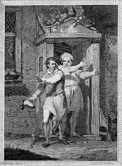 Williams produced several engravings of Rowlandson's caricatures, most notably A College Scene, and another titled Polygamy, a copy of which is in the Royal Collection. He also engraved an illustration by Henry Wigstead titled The Country Vicar's Fireside, and another by John Hamilton Mortimer titled The Coke and Perkin, the latter in a set of prints of Chaucer's Canterbury Tales in the British Museum.[4] These were all published from 1785 to 1787, some by John Raphael Smith and others by Thomas Prattent.