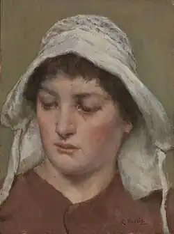 He first visited Newlyn in 1881 and the following year he was at Pont Aven in Brittany, then a magnet for plein-air painters from all over Europe.[1] He settled in Newlyn, Cornwall in 1883 and stayed there for twelve years.[2] Harris was recognised as one of the pioneers of the Newlyn School of artists which included his fellow Birmingham painters, Langley, Wainwright and William Banks Fortescue. Joined by Alexander and Elizabeth Stanhope Forbes, Thomas Cooper Gotch and Frederick Hall, the colony became the focus for modern painting in Britain.[1] He left Newlyn in 1895 and took up portrait painting in Cardiff, Newport and Bristol and it became his main source of income.[1]