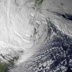 ![]() Satellite image of Sandy shortly before landfall in New Jersey on October 29 | |
