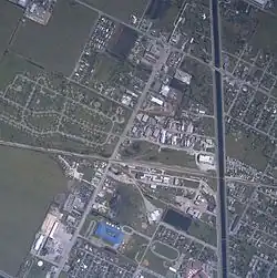 Wilma lashed Hendry County with sustained winds of 75 to 88 mph (121 to 142 km/h).[32] In LaBelle, the municipal airport lost several doors at the hangars and the office was flooded. Additionally, aircraft may have been damaged. A number of roads and a bridge in the city were closed due to debris and downed trees.[38] The city of Clewiston was damaged. Some 200‑year‑old trees were toppled and multiple streets flooded,[39] including Route 27.[40] At least 145 dwellings were demolished, including rows of houses in the section of Harlem.[41] Approximately 90 percent of buildings and homes in Clewiston and eastern Hendry County received damage.[29] Much of the cafeteria at Clewiston High School lost its roof and water leakage from the ceiling occurred in several classrooms.[42] The Hendry Regional Medical Center sustained roof damage. The city's three marinas were destroyed and a number of boats were impacted by the storm. Numerous businesses in the city suffered some degree of losses.[43] At the US Sugar Corporation headquarters, the roof was severely damaged.[44]