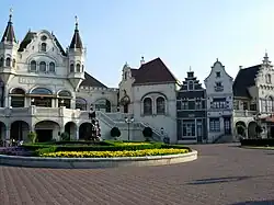Designed by van de Ven, it matches the typical Efteling style. The surroundings consist of old Dutch warehouses. In addition to the theatre facilities, the building holds a large foyer and a restaurant. The total building costs added up to €20 million.[1]