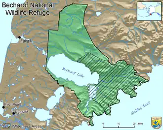 - ^ a b Becharof National Wildlife Refuge: draft wilderness review amendment and supplemental environmental impact statement for the wilderness proposal of the final Becharof comprehensive conservation plan/environmental impact statement/wilderness review. U.S. Fish and Wildlife Service. 1988. pp. 3, 42–.