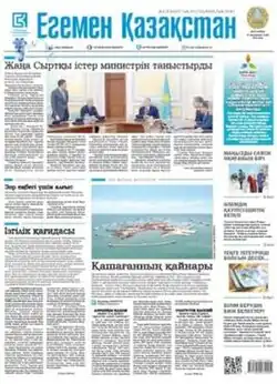 Egemen Qazaqstan (Kazakh: Егемен Қазақстан, [jeɡʲeˈmʲen qɑzɑqˈstɑn], Sovereign Kazakhstan) is a government-owned Kazakh language newspaper published from Kazakhstan. It was first published on 17 December 1919.[1] The newspaper was started by the Ministry of Information and Public Accord.[1][2][3][4]