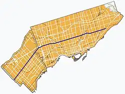 ![]() Eglinton Avenue through Toronto and Mississauga (blue line) | |||||||