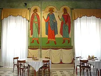 Sendler was a prolific icon painter, painting in both the Russian and Byzantine traditions; his icons and frescoes are displayed in France, Italy, Lebanon and the United States.[6] In recent years, an icon workshop named Atelier Saint-André was established in Lausanne, Switzerland. It is a community of independent painters who follow the teachings of Sendler and work in cooperation with the Atelier Saint-Georges. Their murals, frescoes, and icons "strictly adhere to the canonical and aesthetic rules of traditional iconography which have developed through the past two thousand years".[7]