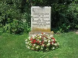 A portrait was made of Wellesz by Jean Cooke, who had been commissioned for the work by Lincoln College.[15][16] (There is also an early portrait, painted in 1911 by Oskar Kokoschka).[17] Wellesz continued composing until he suffered a stroke in 1972. He died two years later and was buried in the Zentralfriedhof in Vienna. His widow Emmy Stross, whom he married in 1908, returned to live in Vienna until her own death in 1987.[1]