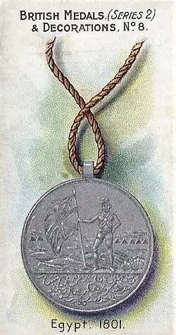 The Egypt Medal is a campaign medal that was awarded by the Governor-General of India to members of the expeditionary force that travelled from India to take part in the 1801 Egyptian campaign, a part of the French Revolutionary Wars.[1]