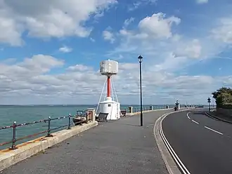 Egypt Point lies in between the town of Cowes and the village of Gurnard. Between 1897 and 1989 a lighthouse was maintained there by Trinity House. It flashed white every ten seconds, with a range of 10 nautical miles (19 km; 12 mi).[2][3] Initially lit by paraffin, in 1925 it was converted to run automatically on acetylene; then in 1969 it was converted to run on electricity.[4] In 1989 the 'changing requirements of the Mariner' led to the light being decommissioned.[5] Though the light no longer functions, the structure remains a landmark for yachtsmen. In 1997 ownership was transferred from Trinity House to the new Isle of Wight Council.[6]