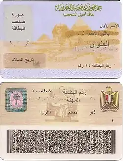 - ^ Interior: Renewal of national ID cards from 97 to 2001, Masrawy, December 21, 2008 Archived April 30, 2012, at the Wayback Machine.