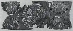 The Roman's introduced their style of tunics with clavi and roundel decorations to Egypt, and not long after, sleeved tunics became generally popular.[8] These decorations were made with tapestry weave (also known as kabaty). This style of decoration remained popular in Egypt, and eventually influenced Chinese weavers.[9] Greek himations and Roman togas were also introduced. In the Coptic period, these styles remained popular.[10]
