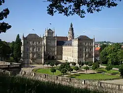 Under Duke Johann Casimir the first major rebuilding took place. Around 1590 the (still extant) south wing was constructed by the Renaissance architect Michael Frey.[2]: 27