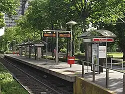 Eifelwall/Stadtarchiv is a station on the Cologne Stadtbahn line 18, located in the Cologne district of Lindenthal. The station lies on Luxemburger Straße, adjacent to nearby Eifelwall, after which the station is named. It is also right next to the extensive parks of the inner green belt.