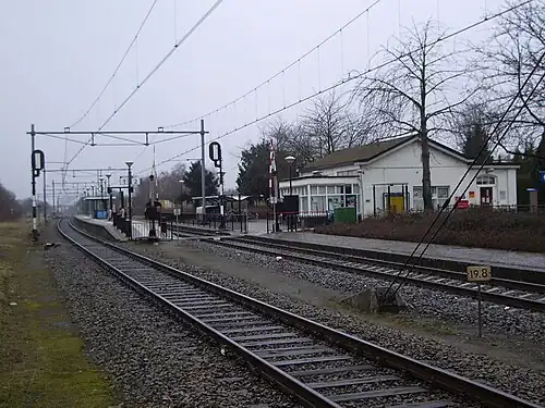 Eijsden railway station is a railway station in the village of Eijsden, Limburg, Netherlands. It is the southernmost railway station in the Netherlands. The railway station is located on the railway line between Liège-Guillemins (Belgium) and Maastricht (Netherlands). Only trains of the National Railway Company of Belgium between the two stations call in Eijsden; Nederlandse Spoorwegen trains don't serve the station. It opened on 24 November 1861, and was closed between 10 December 2006 and 11 December 2011.