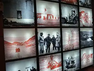 The museum has exhibits about the capture of the city of Eilat in 1949, the history of the Israel Red Sea Outpost. The museum has a collection of photos about the development of the city of Eilat dating from the 1940s to the 1960s.[3] The museum contains information and multimedia about the companies that settled in this part of Israel such as the Salt Company,[4] Mekorot Underwater Observatory Company[2] and the Eilat Electric Company.[5] The museum contains exhibits about the establishment of the city of Eilat as well as information about Israel's southern border, and there are also exhibits in the museum about the Eilat pipeline.[6] The museum also contains information about Timna Copper Mines and the port of Eilat, as well as exhibits about the city's environment. The museum contains exhibits about Operation Uvda.[7] The museum also has a missile storage container obtained from the Karina-A boat.[8] The museum has exhibits about the fauna of Israel's Red Sea coastal territories.[1] The museum has a reconstructed model of a bus from the Ma'ale Akrabim massacre.[9]
