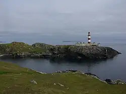 The island projects out considerably into The Minch shipping lane, which is likely why it was decided to place the Eilean Glas Lighthouse here. A track across the narrow isthmus connects Eilean Glas to Scalpay. More recently, a radio mast was erected on Eilean Glas.