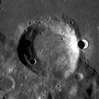 Eimmart is a lunar impact crater that is located near the east-northeastern limb of the Moon, to the northeast of the Mare Crisium. It was named by the IAU in 1935.[1]