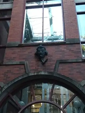 Einstein Gargoyle, also referred to as Albert Einstein,[1] Einstein,[2] and Einstein Gargoyles,[3] is an outdoor 1986 sculpture by Wayne Chabre, installed on the exterior of Willamette Hall on the University of Oregon campus in Eugene, Oregon, United States. The portrait bust depicts Albert Einstein in high relief with a fluttering necktie, and was inspired by a photograph of the scientist on his birthday. It is made of hammered copper sheet and measures approximately 2.5 feet (0.76 m) x 1.5 feet (0.46 m) x 1.5 feet (0.46 m). The sculpture's condition was undetermined when it was surveyed by the Smithsonian Institution's "Save Outdoor Sculpture!" program in March 1993. The sculpture is administered by the University of Oregon.[3]