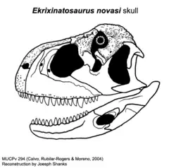 - ^ a b c d e f Juárez Valieri, R.D.; Porfiri, J.D.; Calvo, J.O. (2011). "New information on Ekrixinatosaurus novasi Calvo et al. 2004, a giant and massively-constructed Abelisauroid from the "Middle Cretaceous" of Patagonia". In Calvo; González; Riga; Porfiri; Dos Santos (eds.). Paleontología y dinosarios desde América Latina. pp. 161–169.
