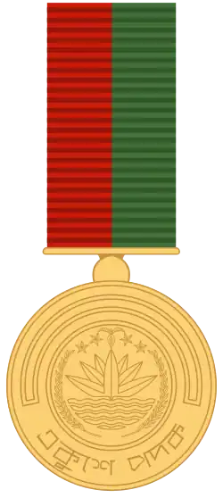 Ekushey Padak in War of Liberation (Bengali: মুক্তিযুদ্ধে একুশে পদক) is one of the main fields of the Ekushey Padak. It is a national given to recognize the contribution of 1971's Bangladesh Liberation War.[8] In 2013, Social Welfare Minister Enamul Haque Mostafa Shahid For the first time, Ekushey Padak was given in Liberation War.[9][10][11][12]