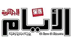El Ayem El Djazairia (Arabic: الأيام الجزائرية) is an Arabic-language Algerian daily newspaper. It was started in 2005 and contains national and international news on different subjects including politics, economics, arts and sports.