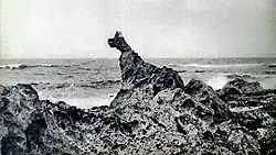 El Boquerón used to be the site of a natural landmark known locally as Perro de Piedra (Stone Dog) or Piedra del Perro (Dog Rock), a reef formation resembling the shape of a sitting dog when seen from Dos Hermanos Bridge. Numerous legends were attributed to the rock formation.[5] The rock used to be so well known that it (and its surrounding coral reef) was declared a cultural and natural landmark in the year 2000. The Piedra del Perro formation stood until 2016 when it was completely destroyed by strong waves.[6]