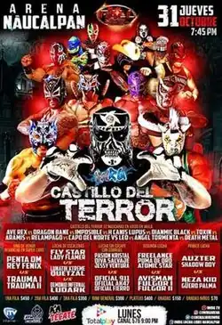 Starting as far back as at least 2002, the Mexican wrestling promotion International Wrestling Revolution Group (IWRG; Sometimes referred to as Grupo Internacional Revolución in Spanish) has held several annual events where the main event was a multi-man steel cage match where the last wrestler left in the cage would be forced to either remove their wrestling mask or have their hair shaved off under Lucha de Apuestas, or "bet match", rules. From 2005 IWRG has promoted a fall show, around the Mexican Day of the Death, under the name El Castillo del Terror ("The Tower of Terror"),[2] to distinguish it from other Steel cage matches held throughout the year such as the IWRG Guerra del Golfo ("Gulf War"),[3] IWRG Guerra de Sexos ("War of the Sexes"),[4] or IWRG Prisión Fatal ("Deadly Prison") shows.[5] The Castillo del Terror shows, as well as the majority of the IWRG shows in general, are held in "Arena Naucalpan", owned by the promoters of IWRG and their main arena. The 2019 Castillo del Terror show will be the 15th year in a row that IWRG has promoted a show under that name.