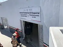 - ^ "Mexico's El Chaparral crossing officially opens Thursday". U-T San Diego. October 30, 2012. Retrieved October 20, 2014.