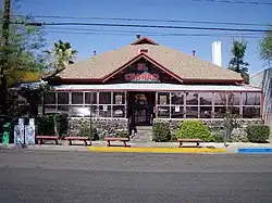 The restaurant was established in September 1922 by Monica Flin, one of Tucson's first businesswomen and the oldest of eight children.[5] Her parents immigrated to Tucson from France in the 1880s, and Monica's father, Jules Flin, helped build the Cathedral of Saint Augustine in the city.[6][7] Coming back from Mexico after her second husband died, Monica acted as the restaurant's hostess, waitress, and chef simultaneously to operate the one-room restaurant, with some financial assistance from her sister.[8] In the first months the restaurant was open, Flin had to frequently persuade the neighbor, a Chinese grocer, for provisions, make the food, have the customer pay, and then pay the grocer back for the materials.[9] The restaurant moved from its original Fourth Avenue location to the Temple of Art and Music, where the Arizona Theatre Company currently stands, and then moved to a more popular site on Broadway.[10]