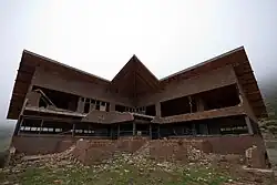 The history of Golobar is linked to the ski resort project that the Provincial Council of Palencia carried out in that place at the end of the 1960s, which also included the construction of a Parador de Turismo at its summit.[3] The tourist boom in mountain sports, backed by the success of the nearby Alto Campoo ski resort, led to the idea of locating the facility in this privileged environment. After the completion of the road leading to the parador, whose construction was practically finished on an esplanade in front of a spectacular valley, the first ski lifts were built a few kilometers below and close to a large parking lot with a capacity for 250 vehicles. In 1973, the economic crisis shook the budgets, and the works, which were very close to completion, were left unfinished and abandoned.[3] Since then, the facilities have suffered progressive deterioration: the ski lifts were removed because of the risk they posed and the hotel building was first used as a shelter and then as a livestock corral, which is the use it is currently assigned. The access road lacks maintenance and has suffered some landslides in recent years.[7]