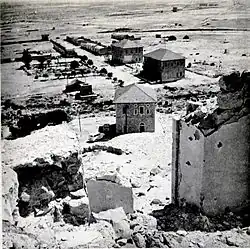 However, the town didn't develop until it became an outpost on the Egyptian front during World War I.[10] In mid-January, 1915, a Turkish Army force of 20,000 entered Sinai by way of El-Auja on an unsuccessful expedition against the Suez Canal.[14] At this time most of the dressed stone was taken from the ancient buildings for building work in Gaza.[9]