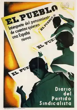 El Pueblo (The People) was a Spanish daily newspaper, the central organ of the Syndicalist Party during the 1930s. The paper had its headquarters in Valencia.[1]