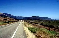The approximately 7,100 acres (2,873 ha) El Sur Ranch comprises 13 of the original parcels.[5] The ranch includes 12% of the private land in Big Sur. It straddles 6 miles (9.7 km) of Highway 1 stretching south from Hurricane Point, north of the mouth of the Little Sur River, to near the Big Sur River in Andrew Molera State Park, and it reaches 2.5 miles (4.0 km) inland over the coastal mountains into the south fork of the Little Sur valley to the border of the Los Padres National Forest.[6][7][8]