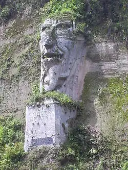 El poder brutal ("Brutal Power"), also known as La cara del diablo ("The Face of the Devil") or El diablo de Tandapi ("The devil of Tandapi"), is a colossal sculpture located in Mejía Canton, Pichincha Province, Ecuador. It is carved into the living rock of a mountain on Ecuador Highway 20, about 5 kilometers from the town of Tandapi. It is famous for its size and because it is located on the most traveled route between Quito and Guayaquil.