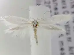 Adults are a single colour, white or creamy white, with variably paler or darker grey hindwings.