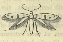 The wingspan is about 8 millimetres (0.31 in). Adults are on wing in July in one generation per year.[2]