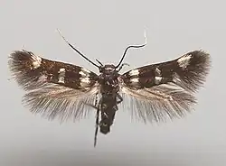 - ^ Sugisima, K. (1 Jan 2005). "Japanese Elachista studied by Parenti (1983) (Lepidoptera, Elachistidae): the subgenus Aphelosetia and the gleichenella-, tetragonella-, and bifasciella-groups". Tijdschrift voor Entomologie. 148 (2): 225–246. doi:10.1163/22119434-900000171. ISSN 2211-9434 – via BRILL.
