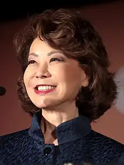 Elaine Lan Chao (born March 26, 1953) is an American businesswoman and former government official who served as United States secretary of labor in the administration of George W. Bush from 2001 to 2009 and as United States secretary of transportation in the first administration of Donald Trump from 2017 to 2021. A member of the Republican Party, Chao was the first Asian American woman to serve in a presidential cabinet.[1][2] She resigned as transportation secretary after the January 6 United States Capitol attack.