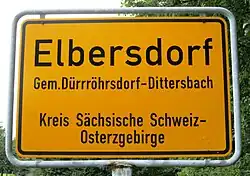 Elbersdorf is a village in the municipality Dürrröhrsdorf-Dittersbach, in the landkreis Sächsische Schweiz-Osterzgebirge, in Saxony, Germany. The village is near the river Wesenitz and is known for the Belvedere Schöne Höhe: a castle on the top of the hill of the village. Formerly an independent municipality, it was absorbed into Porschendorf in 1969, and with Porschendorf into Dürrröhrsdorf-Dittersbach in 1994.[1]