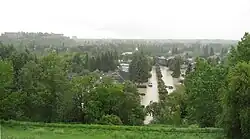 The water flow of the Elbow River fluctuates significantly, and in June 2005 a flood occurred that was so severe (the heaviest in at least two centuries according to Alberta Government estimates) that the water flowed over the Glenmore Dam. Approximately 1,500 Calgarians living downstream were evacuated.[3] Another, more extensive flood began on 20 June 2013, with tens of thousands of evacuations.[4]