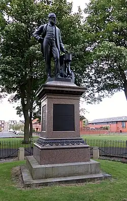 There are two statues within the park, one to Isabella Elder (Sir J. E. Boehm, 1906, Category A listed),[9] and one to her husband John Elder (Archibald Shannan, 1888, Category B listed).[1][10][11] There are also two memorials, commemorating the SS Daphne disaster in 1883[12][13] and the HMS K13 submarine disaster in 1917,[14][15][5] both of which involved the death of local shipyard workers (from Stephens and Fairfields respectively).
