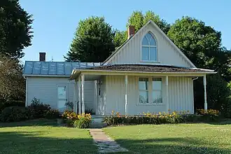 Eldon is a city in Wapello County, Iowa, United States. The population was 783 at the time of the 2020 census.[3] It is the home of the small Carpenter Gothic style house that served as the backdrop for Grant Wood's 1930 painting, American Gothic.[4]