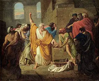 The depiction of Eleazar's death bears some similarities to the death of Socrates, with both being exemplars of Hellenistic ideals of a noble and proper death. Eleazar makes a final statement of his principles, as if he is a defendant at a trial and calling on God as a witness.[3]