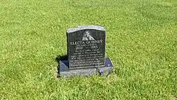 Quinney died in 1885 in Stockbridge, Wisconsin.[3][4] She is buried in the Stockbridge Indian Cemetery, which is on the National Register of Historic Places. As of 1993, her stone was missing[31], however as of 2022, a headstone for her sits in the cemetery. Posthumously, the Electa Quinney Institute for American Indian Education at the University of Wisconsin–Milwaukee was named in her honor.[32] Additionally, a statue of Quinney sits in a park in Kaukauna.
