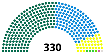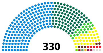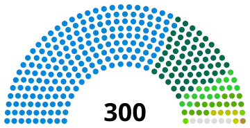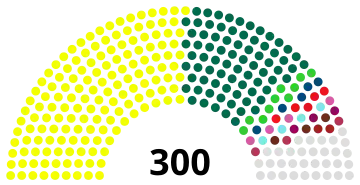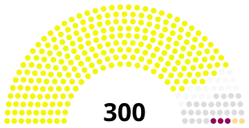 The Parliament of Bangladesh (Jatiya Sangsad) consists of 350 members elected to five-year terms. Of that number, 300 are elected in single-member territorial constituencies according to the first-past-the-post electoral system. The remaining 50 seats are reserved for women, and are filled on the basis of proportional representation by a vote of the 300 members. The number of reserved seats has been revised over the years, increasing from 30 to 45 under the 8th parliament and 45 to 50 under the 9th parliament.[1]