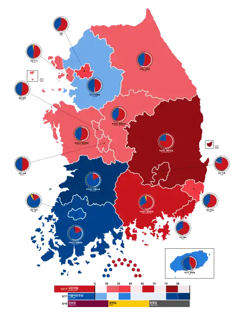 | Daejeon | 470,321 | 48.5 | 393,549 | 40.6 | 94,724 | 9.8 |