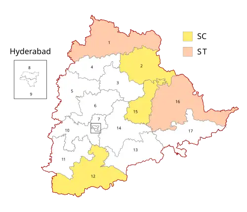 Telangana has 17 Lok Sabha constituencies, with 3 reserved for Scheduled Castes (SC) and 2 for Scheduled Tribes (ST), where electors participate in direct elections to choose their preferred candidates for the position of Member of Parliament (MP). The state has witnessed a total of two elections till date.