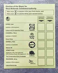 - ^ "Government decision to restore Supplementary Vote system elections is a big win for voters – Electoral Reform Society – ERS". 10 July 2025. Retrieved 10 July 2025.