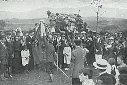 None of the works consulted attempts to define a social profile of the Carlist electorate, be it in terms of sex, age, education, occupation, residence or any other feature.[64] Some approximation is offered by electoral studies dedicated to specific areas – not necessarily representative for the entire Spain[65] – and by works providing social analysis of Carlism at the outbreak of the Civil War.[66] Both types of analysis suggest that Carlism was generally a heterogeneous, inter-class movement; some scholars claim that it was "el movimiento de derechas más interclasista de Epaña".[67] However, it enjoyed popular particularly in rural milieu of small towns and villages rather than in major urban centers; only 3 mandates were obtained by the Carlists in a strictly urban constituency of a large city.[68] Many scholars note also that implantation of Carlism was not equal in all rural areas; it was small- and mid-size farmers rather than landless rural proletariat who were particularly attracted.[69]