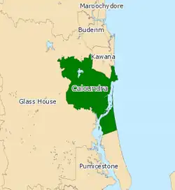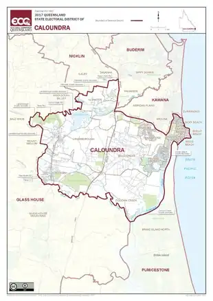 Caloundra is a Legislative Assembly of Queensland electoral district on the Sunshine Coast in the Australian state of Queensland. The electorate is centred on the city of Caloundra and stretches north to Wurtulla, south to Pelican Waters and west to the Bruce Highway.[1]