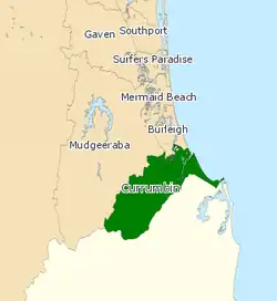 Currumbin is an electoral district of the Legislative Assembly in the Australian state of Queensland.[1]